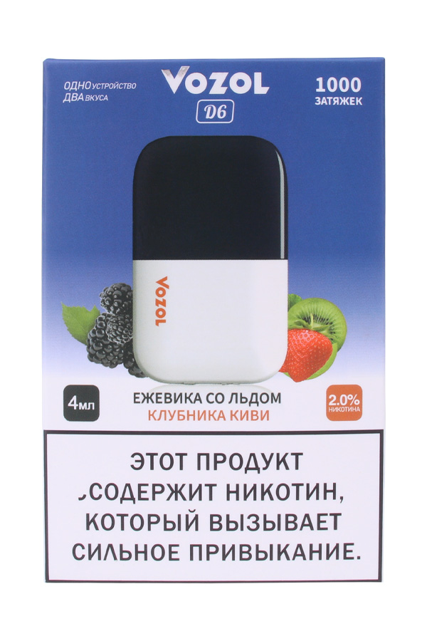 Забронировать Одноразовый VOZOL D6 1000 Black Ice & Strawberry Kiwi Ежевика & Клубника Киви по адресу ?